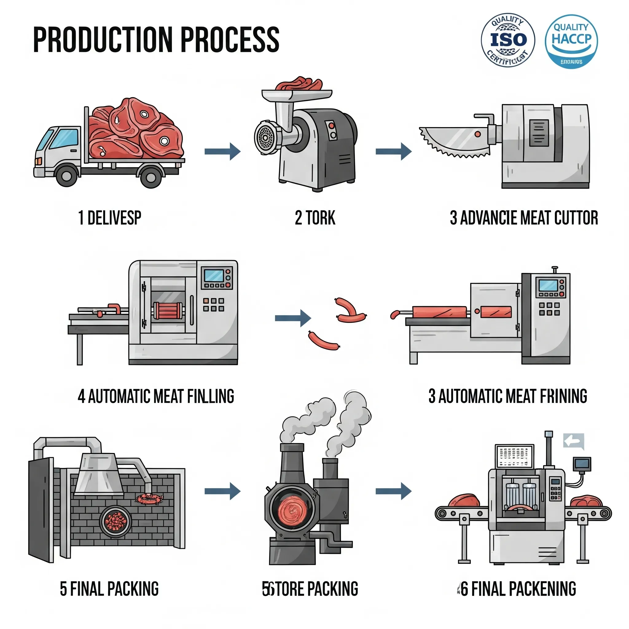 فرایند تولید سوسیس و کالباس در یک واحد صنعتی مدرن و معتبر مانند “بریان گوشت آمل”، یک زنجیره دقیق و کنترلشده است که برای تضمین کیفیت، طعم و ایمنی محصول طراحی شده است.